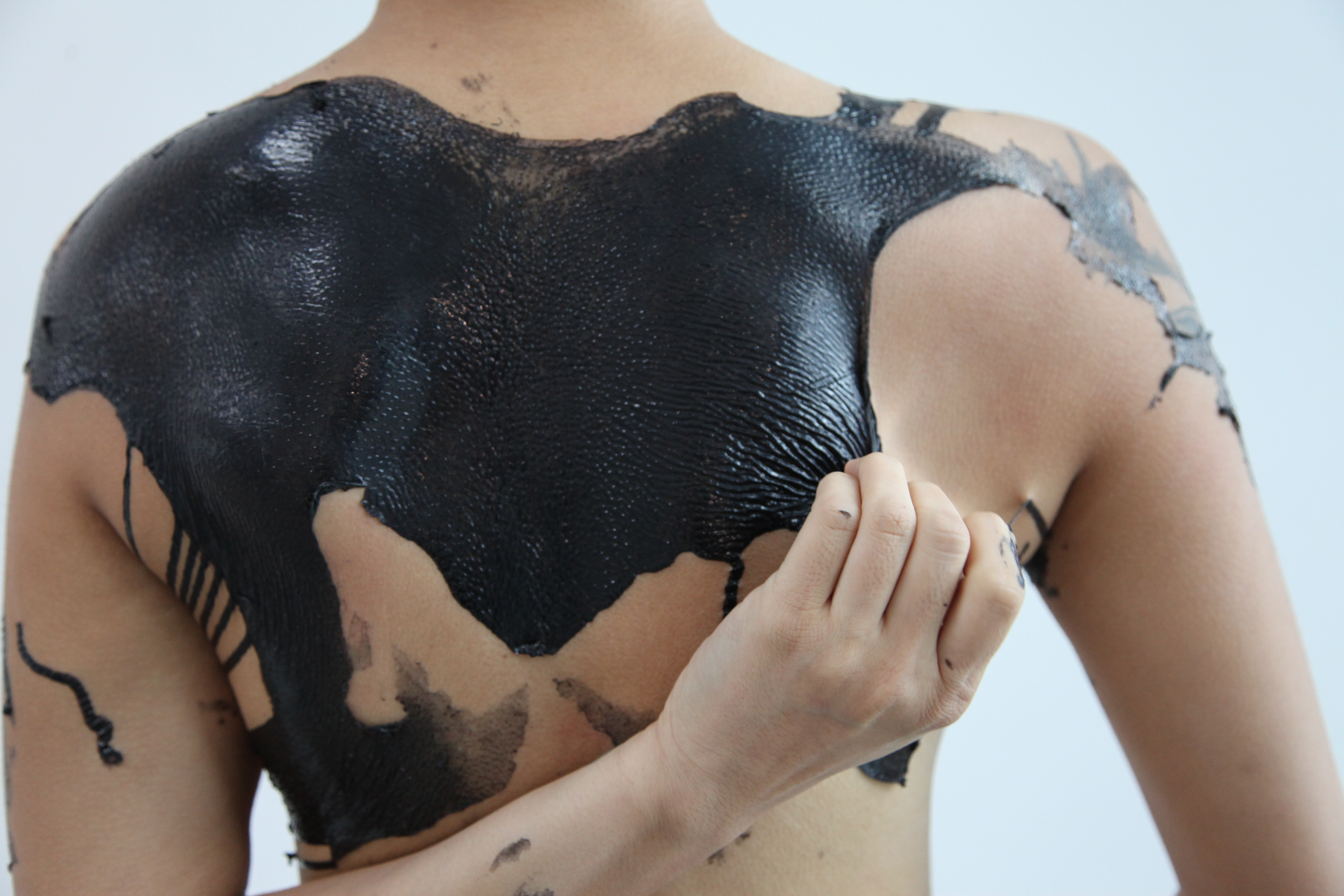 When I think about your practice of separating this latex skin from your body to form a relic, I have two questions. The first is about the value of the copy in some contexts. In European aesthetics, we tend to value the ‘aura’ of the artwork and have scepticism towards mass production and consumerism. However, recently, Byung-Chul Han, professor of philosophy and cultural studies at the Berlin University of the Arts, wrote an article to suggest that in other cultural contexts the copy is just as valuable as the ‘original’ – both are seen as the same. The copies are seen to carry the ‘real trace’ and do not convey an essential notion of being but are seen as ‘persisting creation’. Han suggests that this perception is only conceivable in a culture that is committed to revolutionary ruptures and rifts, and to process and change.