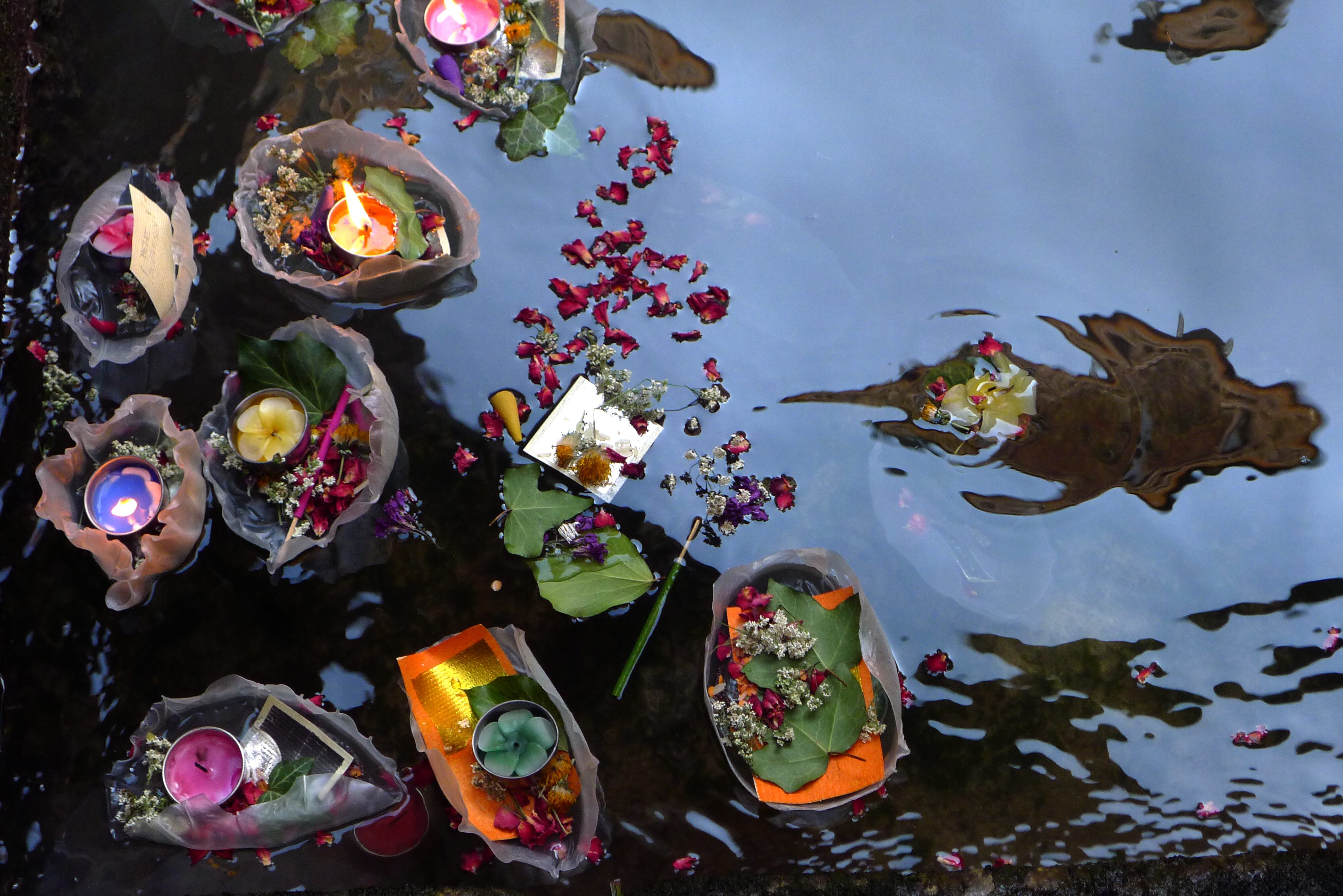 Part lll. Researching the demise of lands lost to encroaching oceans, as well as the lands at risk of submerging – such as Venice, and London where she lives – she referenced the Buddhist/Taoist Hungry Ghost Festival that is observed in many parts of Asia. The belief is that during the Hungry Ghost Festival, the dead return to visit. And we, the living, venerate them by burning incense and joss paper, and offering them food and entertainment. Finally, we see them off back to the underworld with floating lanterns shaped like lotus flowers. Variations of this practice of putting candle-lit offerings to sea – as a way to commune with the spirit world – are found all over Asia: from China to India, Japan to Cambodia, and from Myanmar to Thailand. Participants attended a workshop with the artist to create a floating offering to the sea, using flower/vulva-shaped vessels fashioned from rice paper. They used candles, incense, joss paper, flowers, rice, salt, seeds, and/or herbs. If participants had a personal demon to exorcise/put to death, they included a hair clipping to symbolise letting it go. And if they had a wish, they wrote it on a piece of joss paper and added it to their offering. All offerings were set afloat in a nocturnal ritual.