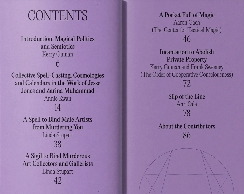 In a culture dominated by prescriptive rationality, and the reduction of language to functions, Looking for a Sign champions the intersectional practices of art and magic, exploring their capacity to invoke a profound dimension of reality that transcends the limitations of language. Comprising essays, reflections, and artworks from a group of international artists and curators — Aaron Gach (The Center for Tactical Magic), Annie Jael Kwan, Anri Sala, Linda Stupart, and Kerry Guinan and Frank Sweeney (The Order of Co-operative Consciousness) — the volume reflects and interrogates an inquisitive turn towards magic in contemporary art. For these practitioners, magic is a potentially political and emancipatory practice, which challenges normative, rational frameworks, expands the horizons of reality, and restores one’s sense of personal and social agency. With an eclectic set of contributions that range from instructive spells to curatorial propositions and academic essays, Looking for a Sign is an indispensable resource for those seeking respite from the relentless codification of our collective existence.